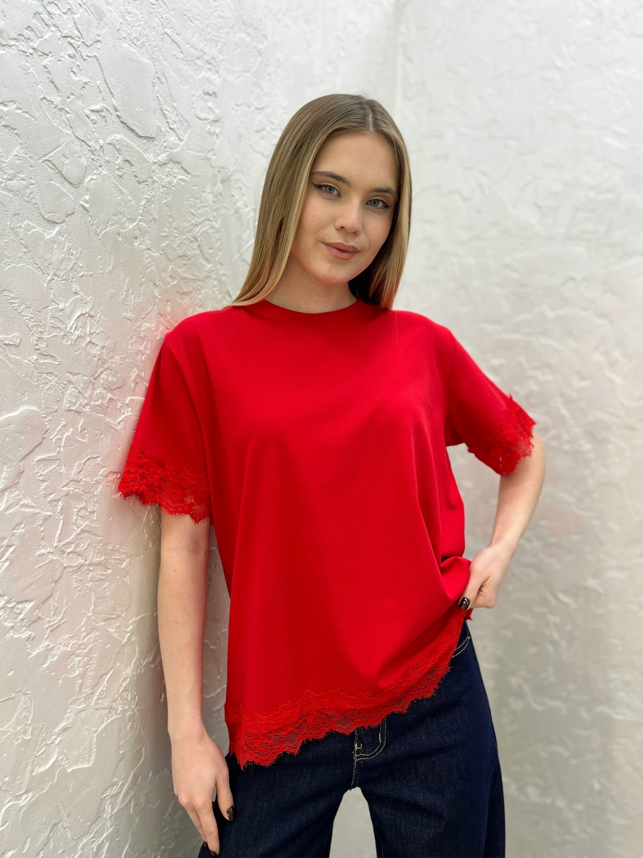 Футболка с кружевом 72461877\17
