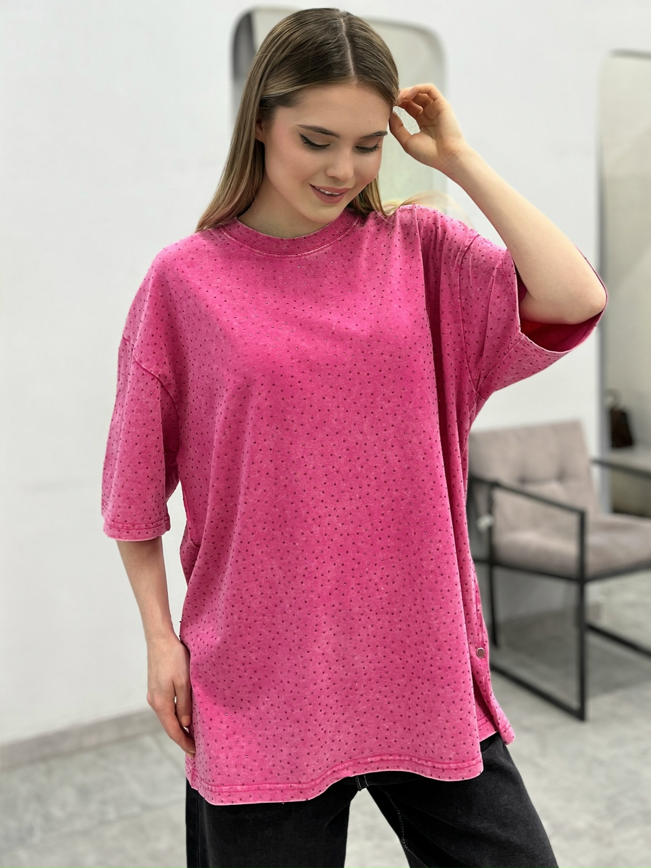 Футболка винтажная со стразами Корея 72461884\447